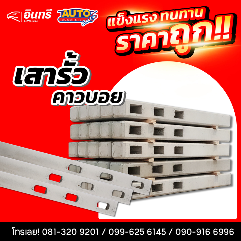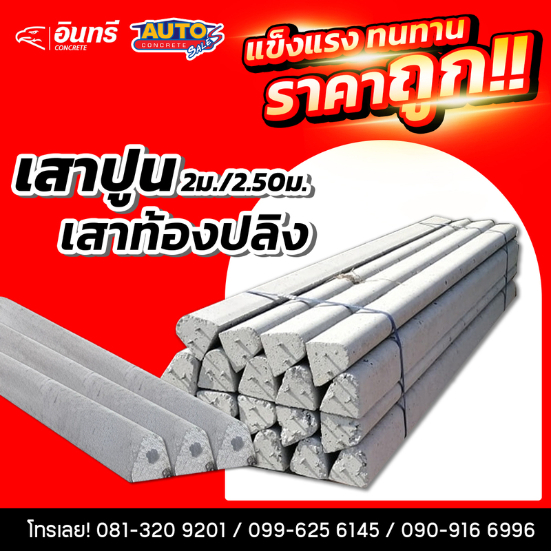 เสาปูนคอนกรีต ผลิตภัณฑ์อินทรีคอนกรีต เสารั้วคอนกรีตอัดแรง ขนาดหลากหลาย